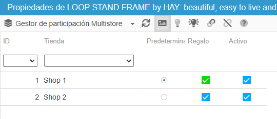 Puede ver y cambiar esta tienda por defecto en la parrilla de Gestion de participación Multistore, en la columna de Propiedades de la derecha.